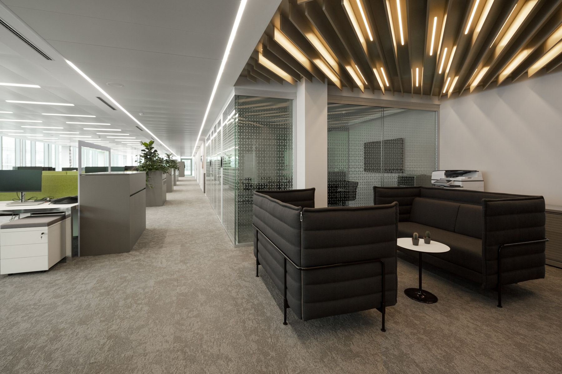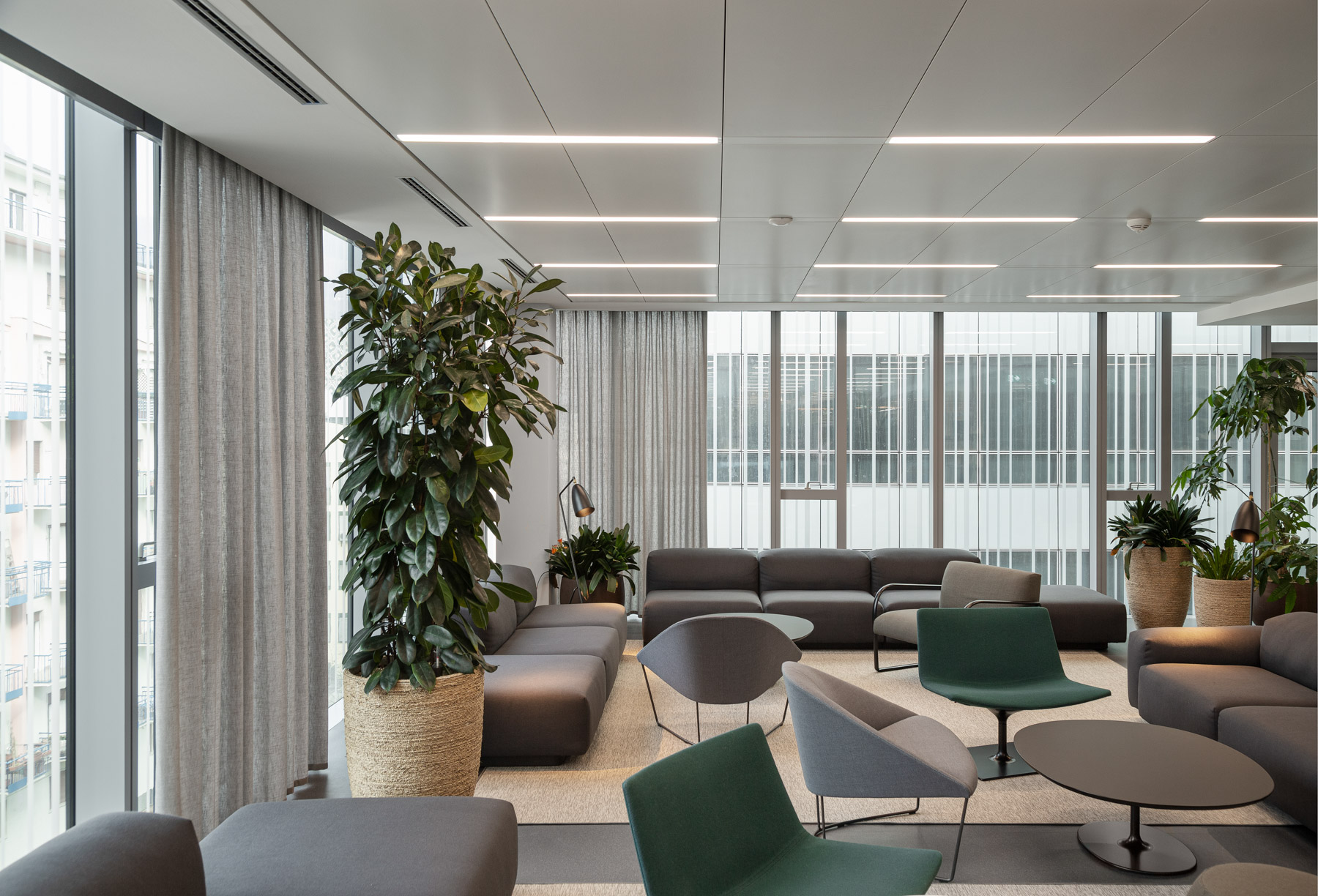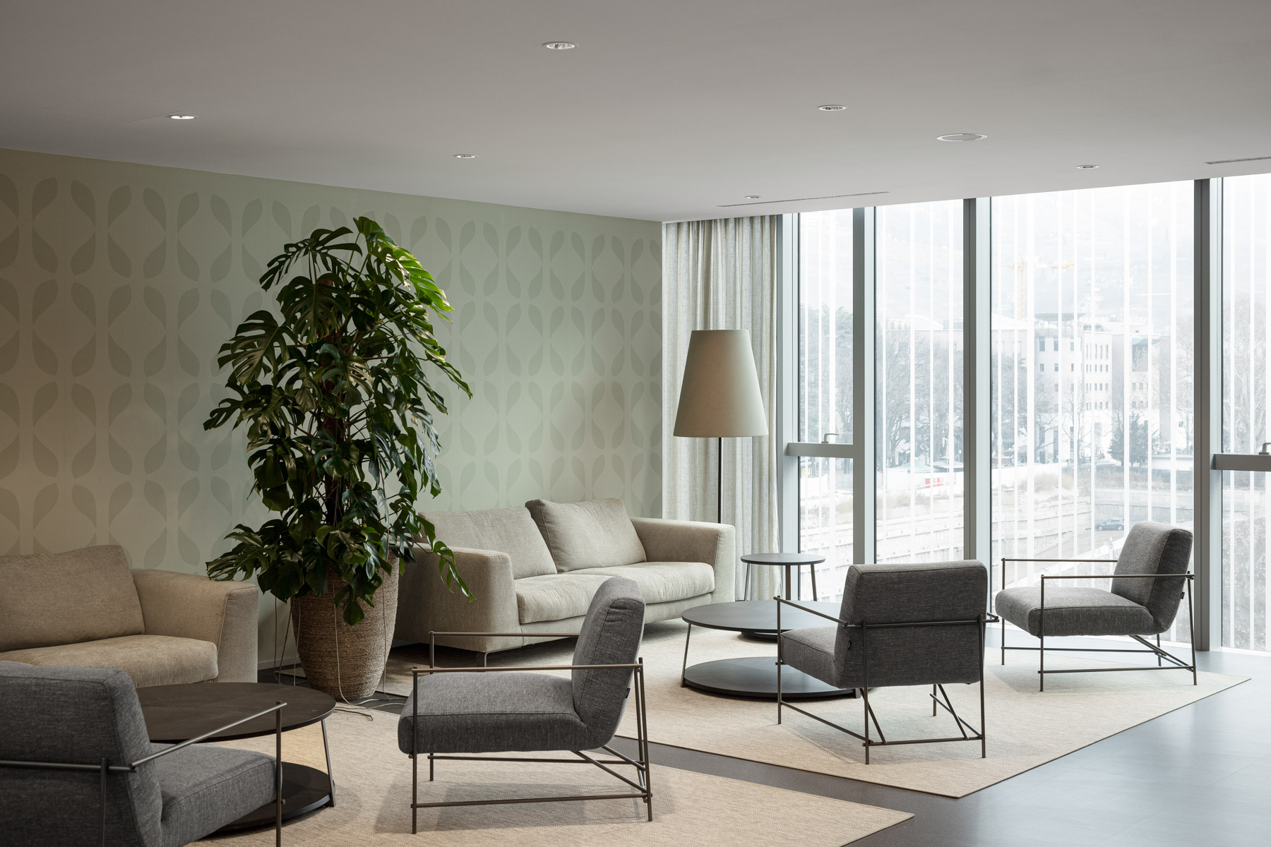 Arredamento completo e pavimento sopraelevato con rivestimento tessile