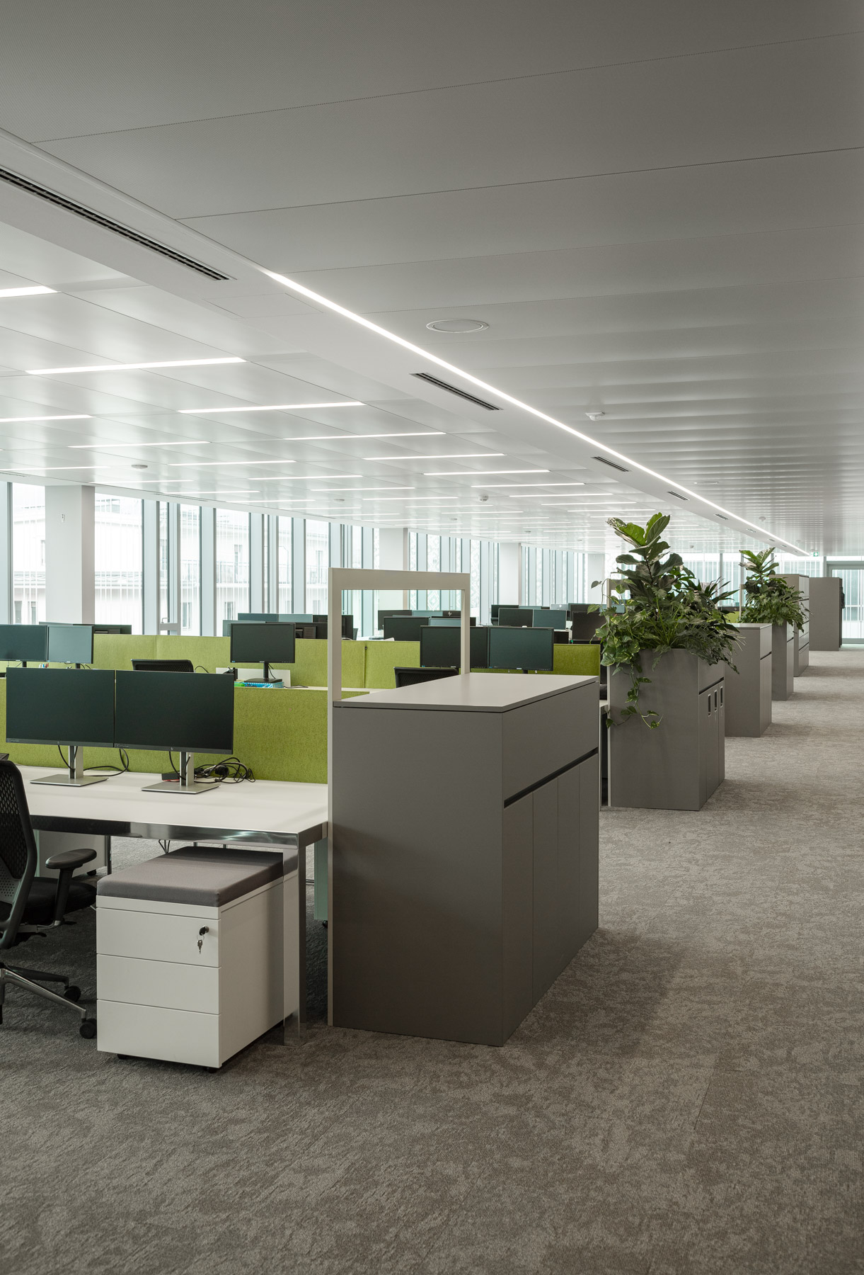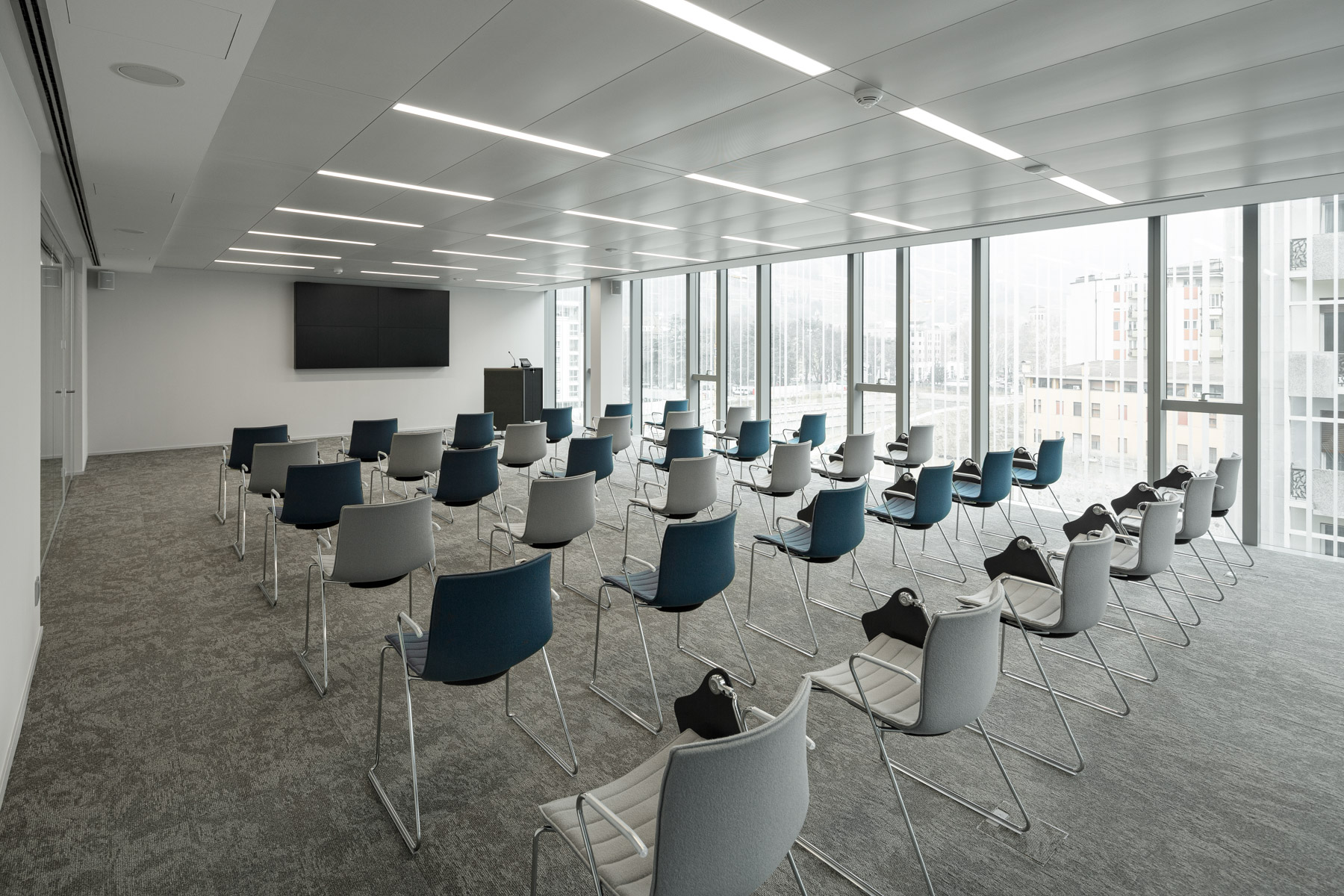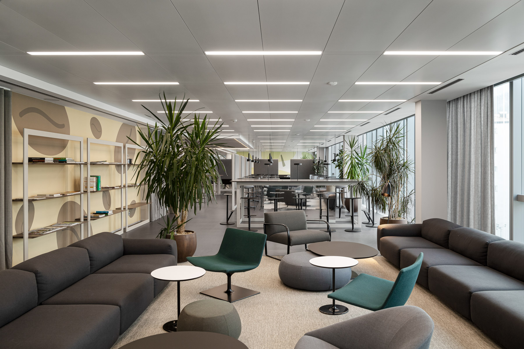 Arredamento completo e pavimento sopraelevato con rivestimento tessile